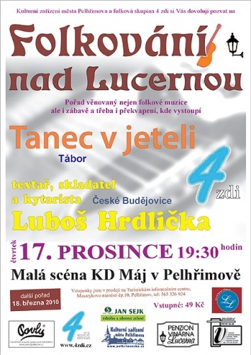 Luboš Hrdlička je kytarista, textař a skladatel písní - Písek, Řeka, Musíš jít dál, apod. Spoluzakladatel skupiny Nezmaři. Tanec v jeteli je výrazně energická muzika zaměřením blíže k blues. Přes zdánlivé protiklady budou tyto dvě tělesa spolu s námi tvořit páteř vánočního večera.
